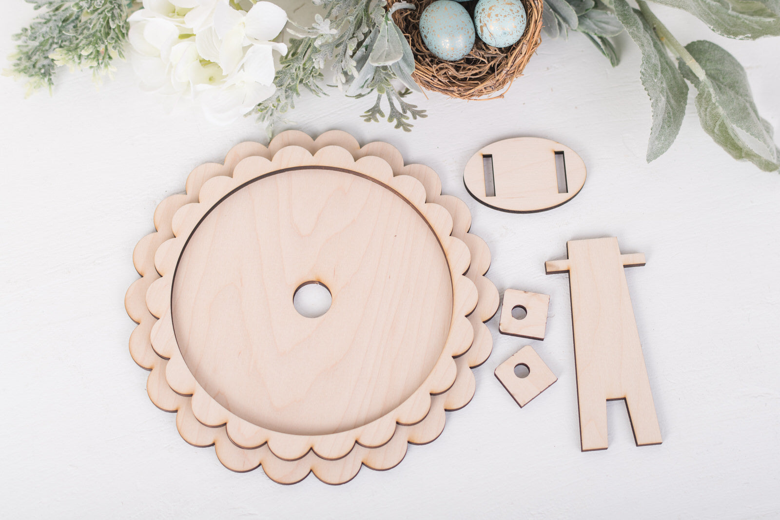 Each kit comes with all the wood cutouts to paint to your liking and put together. Option to add a blank insert. **(note the easel back shown is shorter than what you will receive)